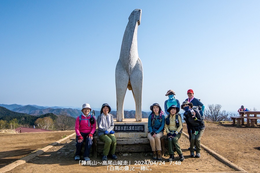 〔陣馬山のシンボル「白馬の像」と一緒に〕
