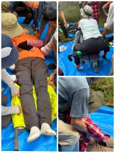 救急処置、搬送、グループごと訓練。
